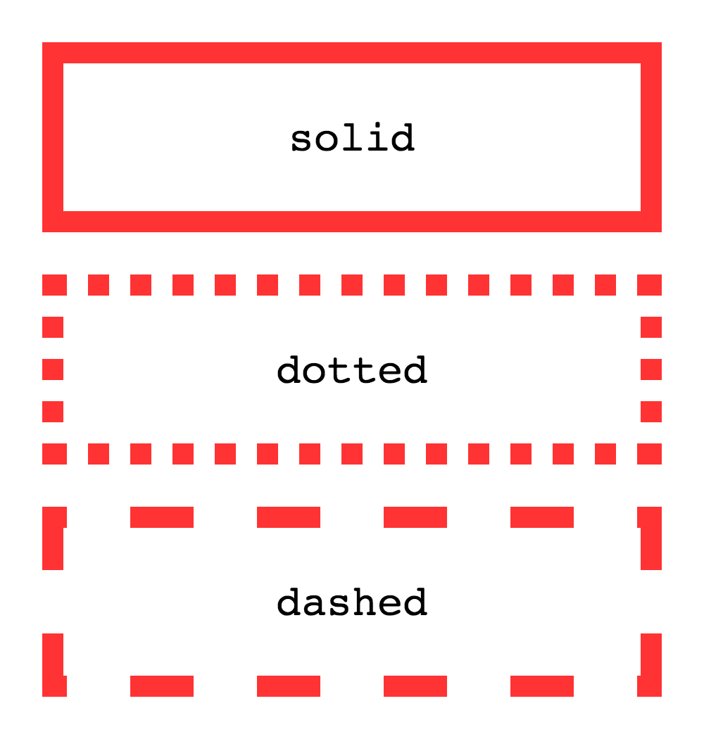 To make a border around an element, all you need is border-style. The values can be solid, dotted, dashed, double, groove, ridge, inset and outset.