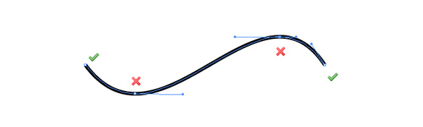 Position anchor points on a curve where the paths begin to change direction, not in the middle of its curve.