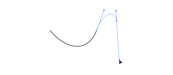 - Pen Tool hovers over end anchor point: changes to Continue Anchor Point Tool
