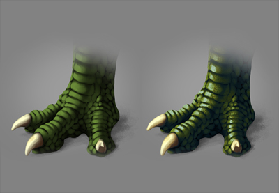 Then remove it from the darker parts, leaving it only on the bright elements of the building. They should reflect more light and shouldn’t be so vividly colored.