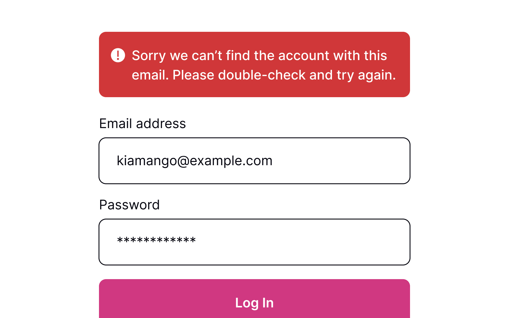 - Be precise: Avoid ambiguous phrases like “an error occurred,” as they don’t help users identify the root cause. Tell them which input contains the error and what they are expected to enter in order to solve it.