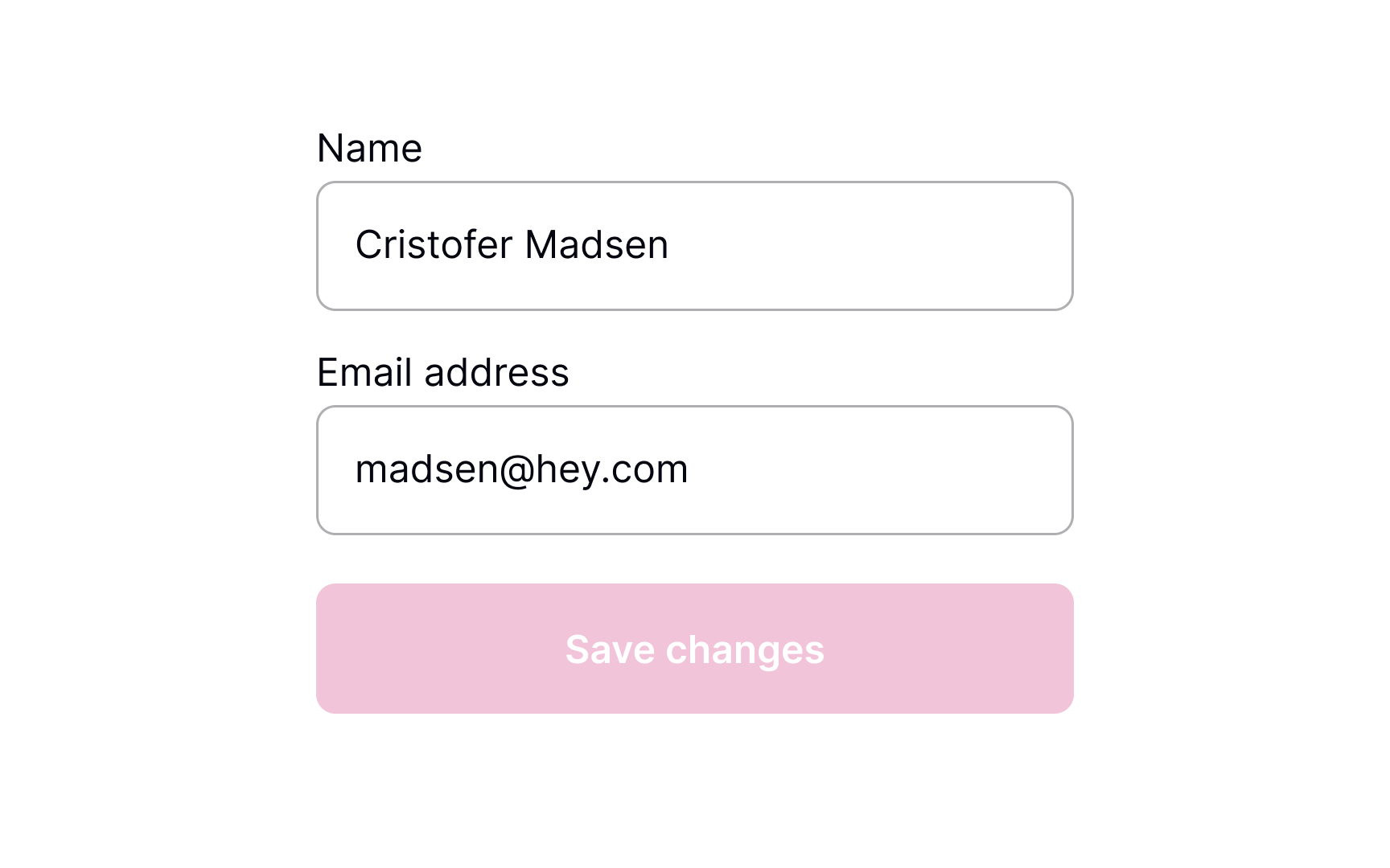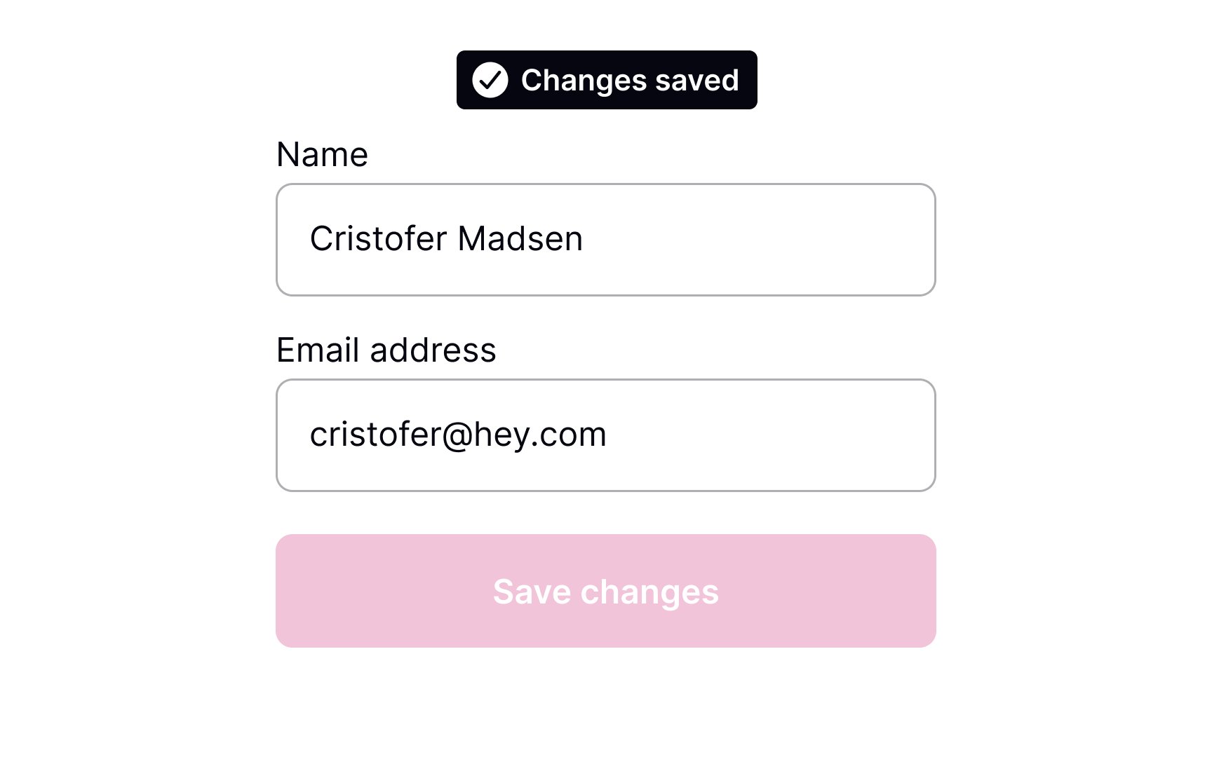 The state of the Save Changes button is a good way to communicate system feedback. Display the button as disabled before changes are applied. When information is modified, change the button state to active in order to bring it to users’ attention. This will communicate to them that changes have been made and are waiting to be saved.SaveShare
