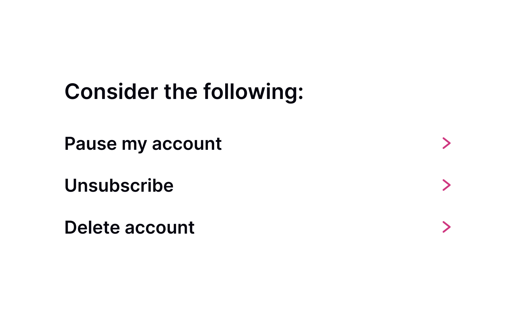 Hiding the Unsubscribe or Delete Account buttons or using other dark patterns to retain users at any cost never helps. If users want to leave, they will leave eventually. Your task is to create a good impression and demonstrate decent behavior while allowing them to do so.SaveShare