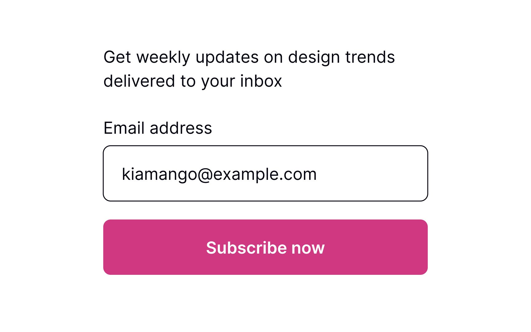 The button’s label should be straightforward and on-point. Users should immediately understand what happens after they press it. You can change the copy to fit the form, e.g., the button can say “Subscribe” if someone is providing their email address to receive emails.SaveShare